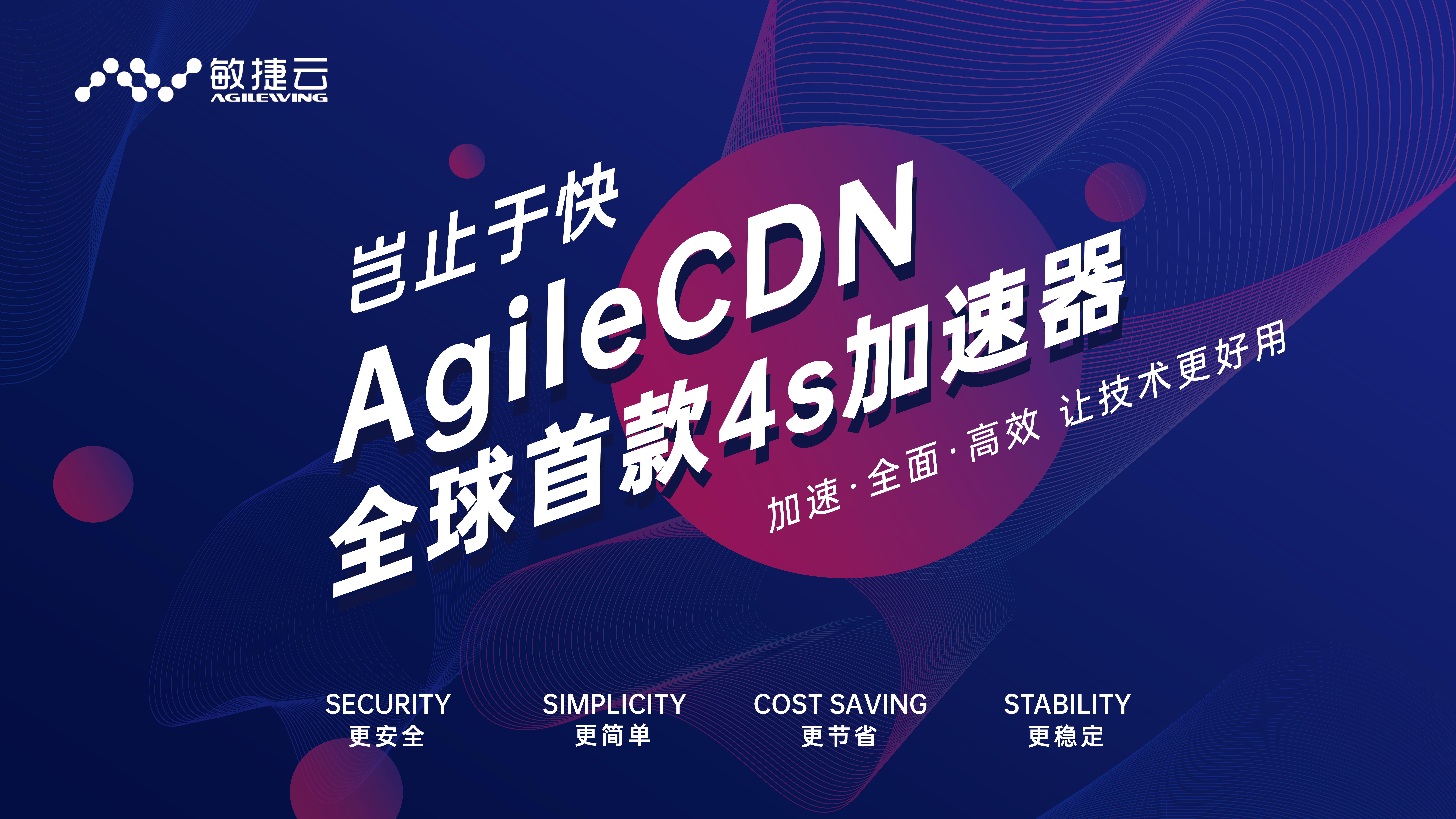 AgileCDN创始了4S的规范,安全(Security)、简略(Simplicity )、节约(Cost Saving )、安稳(Stability )。