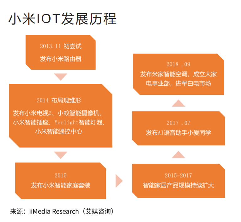 2010年建立之初,小米只要手机和互联网事务。2013年,小米敞开生态链出资方案,经过出资有潜力的企业,敏捷扩大了公司产品矩阵。到现在,小米产品已拓宽到智能电视、笔记本电脑、AI音箱、白色家电等多个品类。